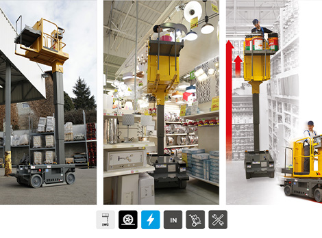 > 電動揀選托盤,帶可折疊側板和前護欄